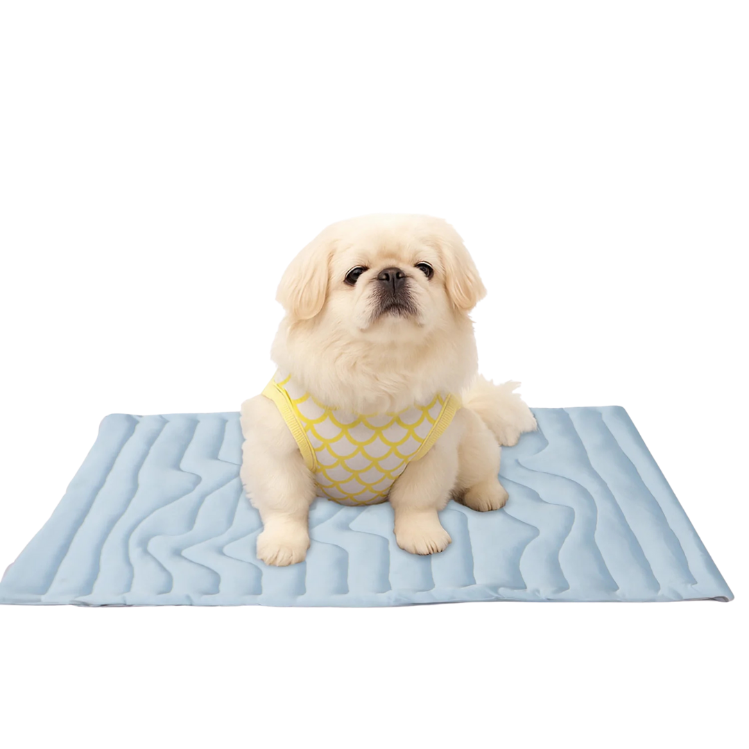 Our Dog Cooling Mat is made with non-toxic materials, featuring wave-quilted fabric and hollow-fiber fill. It’s reversible with a cooling side and cozy side, instantly dissipating body heat without gels. Available in multiple sizes to suit puppies to grandpups.